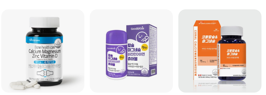 - 마그네슘 시트레이트, 글리시네이트, 락테이트 등이 흡수율이 높음