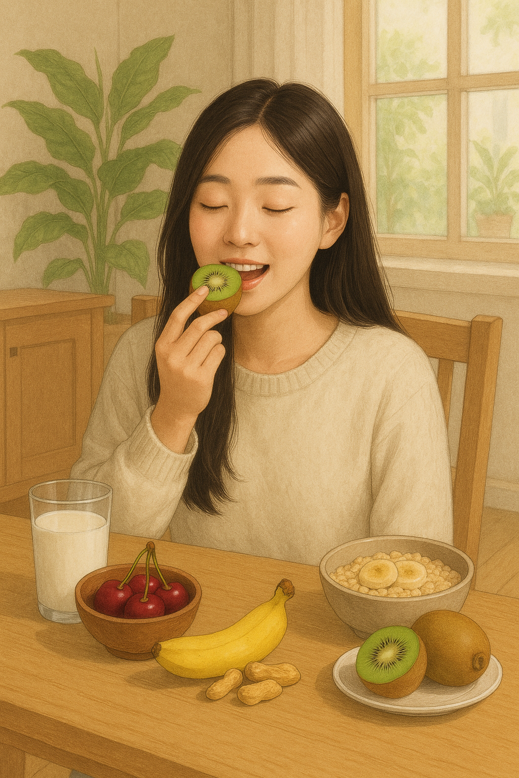 - 섭취 팁: 자기 1시간 전 키위 1~2개 섭취 시 입면 속도 증가